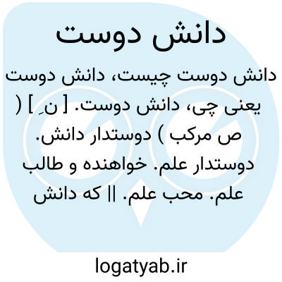 دانش دوست. [ ن ِ ] ( ص مرکب ) دوستدار دانش. دوستدار علم. خواهنده و طالب علم. محب علم. || که دانش دوست اوست. که علم یار اوست.