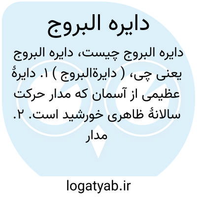 ( دایرةالبروج ) ۱. دایرۀ عظیمی از آسمان که مدار حرکت سالانۀ ظاهری خورشید است.