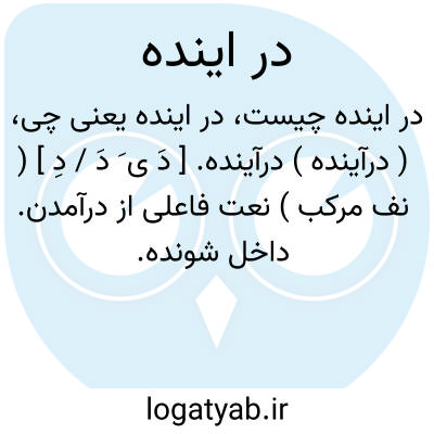 ( درآینده ) درآینده. [ دَ ی َ دَ / دِ ] ( نف مرکب ) نعت فاعلی از درآمدن. داخل شونده. واردشونده.بدرون آینده. داخل. ( دهار ). سالک. میخَط. ( منتهی الارب ). وارد. ( دهار ). هادف. ( منتهی الارب ):