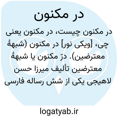 [ویکی نور] در مکنون (شبهۀ معترضین). درّ مکنون یا شبهۀ معترضین تألیف میرزا حسن لاهیجى یکی از شش رساله فارسی با نام رسائل فارسی به چاپ رسیده است.