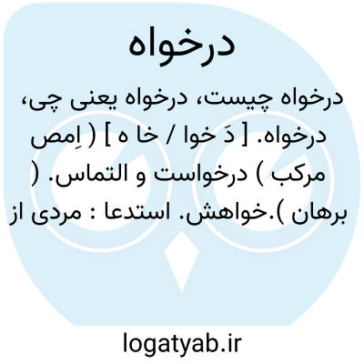 درخواه. [ دَ خوا / خا ه ] ( اِمص مرکب ) درخواست و التماس. ( برهان ).خواهش. استدعا: مردی از ایشان گفت: درخواه من از حضرت شکایت فقر و تنگدستی و حکایت نکایت روزگار دون پرست باشد. ( ترجمه محاسن اصفهان آوی ص 91 ).