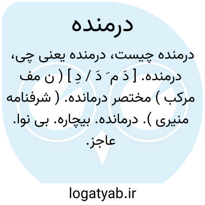 درمنده. [ دَ م َ دَ / دِ ] ( ن مف مرکب ) مختصر درمانده. ( شرفنامه منیری ). درمانده. بیچاره. بی نوا. عاجز. متروک. ( از ناظم الاطباء ):