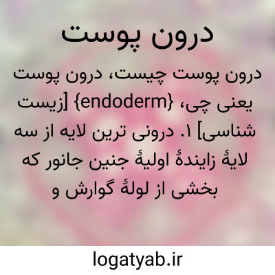 {endoderm} [زیست شناسی] 1. درونی ترین لایه از سه لایۀ زایندۀ اولیۀ جنین جانور که بخشی از لولۀ گوارش و ریه ها و ساختارهای مربوط از آن پدید آید 2. درونی ترین لایۀ پوست که مانند غلافی بافت آوندی ریشه ها و برخی ساقه ها را د ربر گیرد