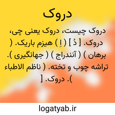 دروک. [ دُ ] ( اِخ ) دهی است از دهستان فروغن بخش ششتمد شهرستان سبزوار. واقع در 36هزارگزی باختر ششتمد و 4 هزارگزی جنوب کال شور، با 298 تن سکنه. آب آن از قنات و راه آن مالرو است. ( از فرهنگ جغرافیایی ایران ج 9 ).