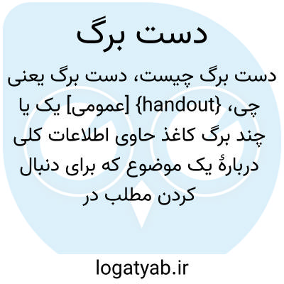 {handout} [عمومی] یک یا چند برگ کاغذ حاوی اطلاعات کلی دربارۀ یک موضوع که برای دنبال کردن مطلب در کلاس یا سخنرانی و امثال آن در میان حاضران پخش می کنند