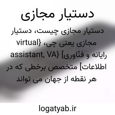 {virtual assistant, VA} [رایانه و فنّاوری اطلاعات] متخصص برخطی که در هر نقطه از جهان می تواند مستقر باشد و خدمات رسانه ای اجتماعی و مدیریتی و فنّی و ابتکاری را ساعت به ساعت در اختیار شرکت ها بگذارد