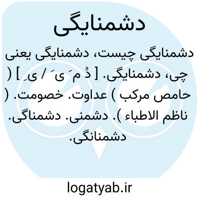 دشمنایگی. [ دُ م َ ی َ / ی ِ ] ( حامص مرکب ) عداوت. خصومت. ( ناظم الاطباء ). دشمنی. دشمناگی. دشمنانگی. بغض. بغضة. شناعة. شحنة. غائلة. ( دهار ): بغضاء، شحناء؛ دشمنایگی سخت. ( دهار ).