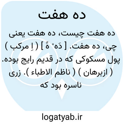 ده هفت. [ دَه ْ هََ ] ( اِ مرکب ) پول مسکوکی که در قدیم رایج بوده. ( ازبرهان ) ( ناظم الاطباء ). زری ناسره بود که ده مثقال آن سه مثقال غل و غش داشته. ( انجمن آرا ) ( آنندراج ).