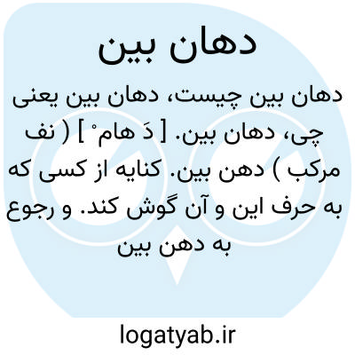 دهان بین. [ دَ هام ْ ] ( نف مرکب ) دهن بین. کنایه از کسی که به حرف این و آن گوش کند. و رجوع به دهن بین شود.