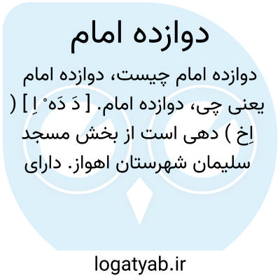 دوازده امام. [ دَ دَه ْ اِ ] ( اِخ ) دهی است از بخش مسجد سلیمان شهرستان اهواز. دارای 400 تن سکنه. آب آن از لوله شرکت نفت و راه آنجا اتومبیل رو است. ساکنین از طایفه هفت لنگ بختیاری می باشند. ( از فرهنگ جغرافیایی ایران ج 6 ).