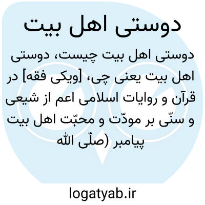 [ویکی اهل البیت] دوستی اهل بیت (ع). در قرآن و روایات اسلامی اعم از شیعی و سنی بر مودت و محبت اهل البیت پیامبر صلی الله علیه و آله و سلم تأکید فراوان شده است؛ و این تنها بدان جهت نیست که آنان ذریه ی پیامبر صلی الله علیه و آله و سلم و از نسل اویند، بلکه از آن جهت است که آنان دارای فضایل و کمالات، و به عبارت دیگر جامع همه صفات کمال و جمالند؛ به تعبیر دقیق تر، مظهر صفات جمال و جلال الهی اند. لذا در حقیقت، دوست داشتن آنان با آن جامعیت، محبت به خوبی هایی است که در آنان به نحو کامل تجلی نموده، و منبع همه این خوبی ها خداوند متعال است. پس در حقیقت محبت و اظهار عشق و ارادات قلبی به اهل بیت علیهم السّلام محبت و اظهار ارادات به خداوند متعال است و از آنجا که محبت، نیرویی است که انسان را به سوی محبوب سوق می دهد، پس از جنبه تربیتی، محبت به خوبان، انسان را به خوبی ها سوق می دهد.