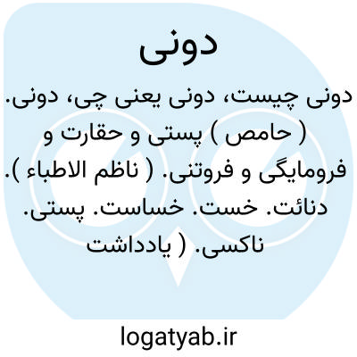دونی. ( حامص ) پستی و حقارت و فرومایگی و فروتنی. ( ناظم الاطباء ). دنائت. خست. خساست. پستی. ناکسی. ( یادداشت مؤلف ). و رجوع به دون شود.