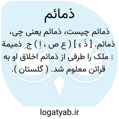 ذمائم. [ ذَ ءِ ] ( ع ص، اِ ) ج ِ ذمیمة: ملک را طرفی از ذمائم اخلاق او به قرائن معلوم شد. ( گلستان ). به یمن قدم درویشان و صدق نفس ایشان ذمائم اخلاق به محامد مبدل گشت. ( گلستان ).