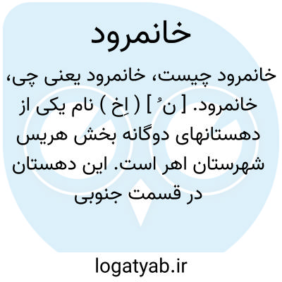 خانمرود. [ ن ُ ] ( اِخ ) نام یکی از دهستانهای دوگانه بخش هریس شهرستان اهر است. این دهستان در قسمت جنوبی شهرستان اهر واقع و از شمال به دهستان حومه اهر و از جنوب و خاور به دهستان آلان براغوش و از باختر به دهستان بدوستان محدود میباشد. آب و هوای آن معتدل و آب قراء تابعه عموماً از چشمه سار و رودخانه های محلی و رودخانه قوری چای است. این دهکده از 16 آبادی بزرگ وکوچک تشکیل شده و جمعیتش در حدود 1230 تن میباشد. آبادیهای مهم آن عبارت است از: برازین، خشکناب، موسالو، گوراوان، هریس. ( از فرهنگ جغرافیایی ایران ج 4 ).