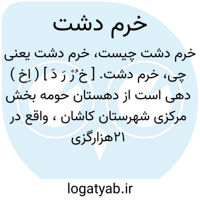 خرم دشت. [ خ ُرْ رَ دَ ] ( اِخ ) دهی است از دهستان حومه بخش مرکزی شهرستان کاشان، واقع در 21هزارگزی جنوب خاوری کاشان و 2هزارگزی باختر شوسه کاشان به نطنز. این ناحیه دامنه و معتدل است. آب آن از دو رشته قنات و محصول آنجا غلات و پنبه و پیاز و میوه.شغل اهالی زراعت است و برخی برای تأمین معاش به طهران برای کارگری می روند. صنایع دستی زنان قالی بافی است و راه فرعی بشوسه دارد. مزرعه گز با 50 نفر سکنه جزء این آبادیست. ( از فرهنگ جغرافیائی ایران ج 3 ).