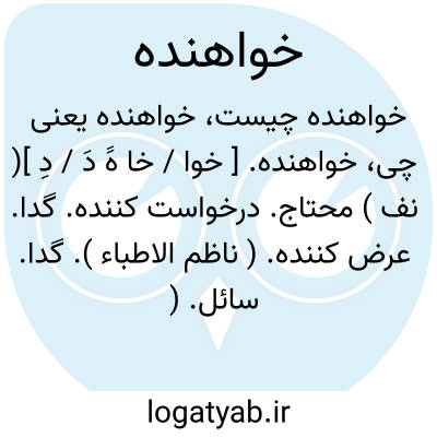 خواهنده. [ خوا / خا هََ دَ / دِ ]( نف ) محتاج. درخواست کننده. گدا. عرض کننده. ( ناظم الاطباء ). گدا. سائل. ( یادداشت بخط مؤلف ):