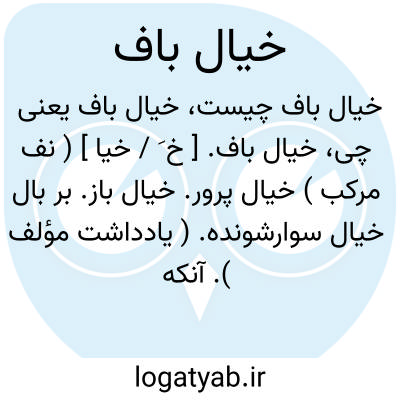خیال باف. [ خ َ / خیا ] ( نف مرکب ) خیال پرور. خیال باز. بر بال خیال سوارشونده. ( یادداشت مؤلف ). آنکه بنای کارهای وی از روی هوا و هوس است و واقعیت ندارد. ( ناظم الاطباء ).