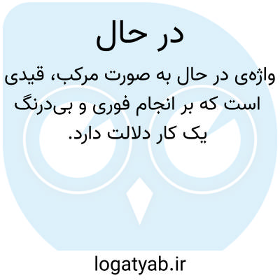 واژه‌ی در حال به صورت مرکب، قیدی است که بر انجام فوری و بی‌درنگ یک کار دلالت دارد. این اصطلاح در زبان فارسی با عباراتی همچون فی‌الفور، همان دم، بی‌درنگ و در همان لحظه هم‌معنی است و بر اقدام یا رویدادی تأکید می‌کند که بدون فاصله‌ی زمانی رخ می‌دهد. در متون کلاسیک فارسی، کاربرد این واژه به‌کرات مشاهده می‌شود. برای نمونه، در تاریخ بیهقی آمده است: در حال فرمود که مال ضمان از باکالنجار والی گرگان بباید خواست. همچنین در قصص‌الانبیاء ذکر شده: جبرئیل بدان اشاره کرد، در حال سبز گشت و میوه آورد. در کتاب کلیله و دمنه نیز می‌خوانیم: مرد... در حال به عذر مشغول شد که همگی گواهی بر استفاده‌ی دیرینه و رایج این قید در ادبیات کهن ایران هستند. این تعبیر، با تأکید بر آنی بودن و عدم تأخیر، نقشی مهم در ایجاز و رسایی کلام فارسی ایفا کرده است. کاربرد آن در نثر تاریخی و ادبی، نه‌تنها بر سرعت عمل، بلکه بر قطعیت و قاطعیت رویدادها نیز تأکید دارد و عنصری زنده و پویا در انتقال سریع و مؤثر معنا به شمار می‌رود.