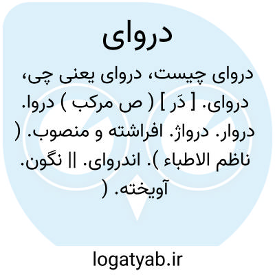 دروای. [ دَر ] ( ص مرکب ) دروا. دروار. درواژ. افراشته و منصوب. ( ناظم الاطباء ). اندروای. || نگون. آویخته. ( آنندراج ) ( اوبهی ).