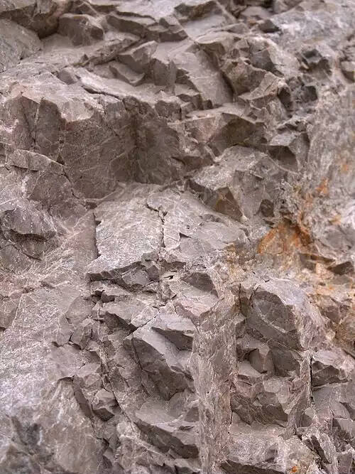 دولومیت (سنگ). دولومیت ( انگلیسی: Dolomite ) نوعی سنگ کربناته رسوبی است که دارای مقادیر زیادی کانی دولومیت ( CaMg ( CO3 ) 2 ) است. دولومیت دارای نرخ استوکیومتری در مقادیر نسبتاً مساوی منیزیم و کلسیم است. بیشتر سنگ های دولومیتی بر اثر فرایند جایگزینی منیزیم در سنگ آهک یا آهک پیش از سنگ شدگی تشکیل می شود. سنگ دولومیت به فرسایش مقاوم بوده و ممکن است دارای لایه یا بدون آن باشد. دولومیت نسبت به سنگ آهک قابلیت انحلال کمتری در آب های زیرزمینی نسبتاً اسیدی دارد ولی با گذشت زمان می تواند اشکال انحلالی ( کارست ) را پدید آورد. دولومیت همچنین می تواند به عنوان سنگ مخزن نفت و گاز طبیعی عمل کند.