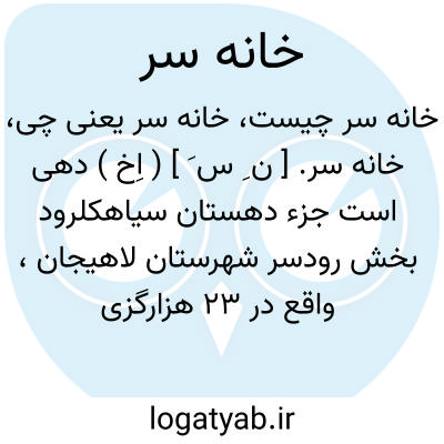 خانه سر. [ ن ِ س َ ] ( اِخ ) ده کوچکی است از دهستان اشکور پایین بخش رودسر شهرستان لاهیجان واقع در 54 هزارگزی جنوب رودسر و 4هزارگزی شوئیل. سکنه آنجا 38 تن و محصول عمده آن غلات و مختصری فندق است. ( از فرهنگ جغرافیایی ایران ج 2 ص 98 ).