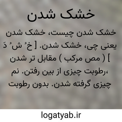 خشک شدن. [ خ ُ ش ُ دَ ] ( مص مرکب ) مقابل تر شدن،رطوبت چیزی از بین رفتن. نم چیزی گرفته شدن. بدون رطوبت شدن. جَفاف. یبس. جفوف. ( تاج المصادر بیهقی ).