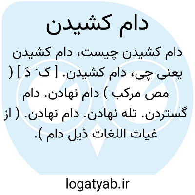 دام کشیدن. [ ک َ دَ ] ( مص مرکب ) دام نهادن. دام گستردن. تله نهادن. دام نهادن. ( از غیاث اللغات ذیل دام ). || برداشتن دام. || نجات بخشیدن گرفتاری را.