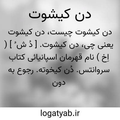 دن کیشوت. [ دُ ش ُ ] ( اِخ ) نام قهرمان اسپانیائی کتاب سروانتس. دُن کیخوته. رجوع به دون کیشوت شود. || تعبیری طنزآمیز مأخوذ از این نام مانند تارتارن، پهلوان لافی. پهلوان پنبه. ( یادداشت مؤلف ).