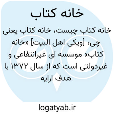 [ویکی اهل البیت] «خانه کتاب» موسسه ای غیرانتفاعی و غیردولتی است که از سال 1372 با هدف ارایه خدمات اطلاع رسانی در زمینه کتاب های منتشر شده در ایران فعالیت می نماید.
