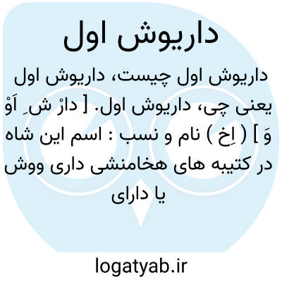 داریوش اول. [ دارْ ش ِ اَوْ وَ ] ( اِخ ) نام و نسب: اسم این شاه در کتیبه های هخامنشی داری ووش یا دارای واوش، بزبان بابلی دریاووش و در کتیبه های مصریان بزبان مصری آن تریوش و یا تاریوش. و مورخین یونانی: داریس. در توراة: داریوش و دَریاوِش. مورخین رومی، داریوس و در پهلوی: داریو و در کتب مورخین اسلامی بصورت های داریوش و داریوس نوشته اند. بعض نویسندگان اسلامی مانند مسعودی و ثعالبی او را داراب یا دارای اکبر نیز گفته اند اما این اسم ها مربوط به این داریوش نیست و اینکه در ذیل عنوان «دارا» ( داریوش اول ) در همین لغت نامه او را دارای اکبر نیز خواندیم ناظر به خطای مورخان مذکور بوده است. داریوش اول در داستان ها فراموش شده و بعض کارهای او را به داریوش دوم یا دیگران نسبت داده اند. داریوش پسر وشتاسپ و او فرزند ارشام و ارشام پسر آریارمنا بود. خود آریارمنا با فاصله پنج نسل به هخامنش میرسید. بنابراین داریوش اول خلف هشتم هخامنش است. ویشتاسپ پدر او در زمان کورش والی پارس بود. داریوش در آغاز پادشاهی با مشکلات بسیاری روبرو شد. غیبت کمبوجیه از ایران چهار سال طول کشیده بود. گئومات مغ هفت ماه خود را به عنوان بردیا برادر کمبوجیه بر تخت مستقر ساخته و بی نظمی و هرج و مرج را در کشور توسعه داده بود. در نقاط دیگر کشور هم کسان دیگر بدعوی اینکه از دودمان شاهان پیشین هستند لوای استقلال برافراشته بودند. شرحی که از زبان داریوش در کتیبه های بیستون کرمانشاه از این وقایع آمده بسیار جالب است. این کتیبه ها یکی بزرگ و دیگری کوچک و بر کوه بیستون که سر راه کرمانشاه به همدان و در فاصله شش فرسنگی شهرستان کرمانشاه است قرار دارد و جای آن در حدود 100 پا از زمین بالاتر است. شرح این شورشها از بند 16 ستون اول کتیبه آغاز میشود و وقایعی که ذکر می کند بدین قرار است: