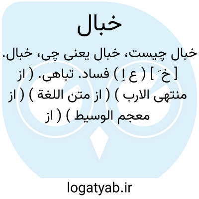 برحمت مرا بهره داد از خبال. ناصرخسرو.|| نقصان. ( از متن اللغة ) ( از معجم الوسیط ) ( از اقرب الموارد )( از تاج العروس ) ( از منتهی الارب ) ( از البستان ) ( از لسان العرب ). || هلاک. ( متن اللغة ) ( معجم الوسیط ) ( اقرب الموارد ) ( لسان العرب ). || رنج. ( از منتهی الارب ) ( از البستان ) ( از اقرب الموارد ) ( از متن اللغة ) ( از معجم الوسیط ) ( از تاج العروس ) ( از لسان العرب ). || کوفتگی. ( از متن اللغة ) ( از معجم الوسیط ) ( از تاج العروس ). || عیال. ( از متن اللغة ) ( از معجم الوسیط ) ( از تاج العروس ) ( از منتهی الارب ) ( از لسان العرب ) ( از البستان ). || جنون و شبه جنون. ( از متن اللغة ) ( از معجم الوسیط ). || زهر کشنده. ( متن اللغة ) ( معجم الوسیط ) ( از اقرب الموارد ) ( از البستان ) ( از لسان العرب ) ( از تاج العروس ) ( از منتهی الارب ). || منع. جلوگیری. || رفتن چیزی. ( از متن اللغة ). || زردابه دوزخیان. ( از متن اللغة ) ( از منتهی الارب ) ( از لسان العرب ) ( از اقرب الموارد ): «من شرب الخمر سقاه اﷲ من طینة الخبال یوم القیامة». ( حدیث نبوی، به نقل معجم الوسیط ). || گندیدگی گرداگرد چاه بر اثر کهنگی و خوردن آب سنگ چین آنرا که چون دلو در مغاکهای آن درآید دریده گردد. ( از تاج العروس ) ( از متن اللغة ) ( از منتهی الارب ) ( از لسان العرب ). || ( مص ) شل شدن دست کسی. ( از منتهی الارب ) ( از لسان العرب ).