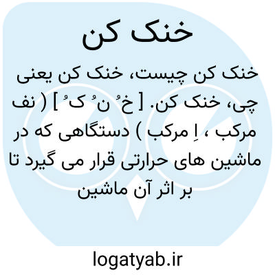 خنک کن. [ خ ُ ن ُ ک ُ ] ( نف مرکب، اِ مرکب ) دستگاهی که در ماشین های حرارتی قرار می گیرد تا بر اثر آن ماشین زیاد گرم نشود.