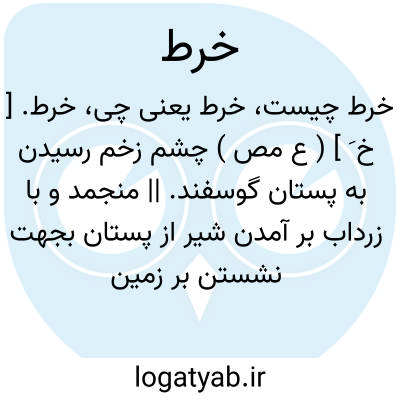 خرط. [ خ ِ ] ( ع اِ ) شیر چشم زخم رسیده. || شیر بسته و با زرداب از نشستن گوسفند و ناقه بر زمین نمناک. ( منتهی الارب ) ( از تاج العروس ) ( از لسان العرب ).
