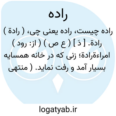 ( رادة ) رادة. [ دَ ] ( ع ص ) ( از: رود ) امراءةرادة؛ زنی که در خانه همسایه بسیار آمد و رفت نماید. ( منتهی الارب ). رؤدة. || ج ِ رائد. ( اقرب الموارد ) ( منتهی الارب ). رجوع به رائد شود. || ریح رادة؛ باد نرم. ریح ریدة. ( منتهی الارب ).