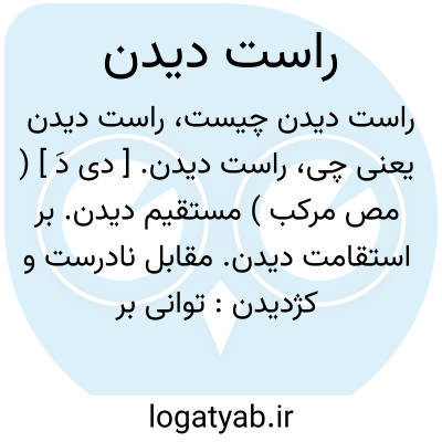 راست دیدن. [ دی دَ ] ( مص مرکب ) مستقیم دیدن. بر استقامت دیدن. مقابل نادرست و کژدیدن: