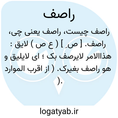 راصف. [ ص ِ ] ( ع ص ) لایق: هذاالامر لایرصف بک؛ ای لایلیق و هو راصف بغیرک. ( از اقرب الموارد ).