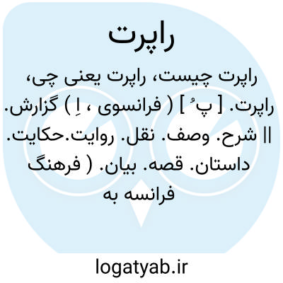 ( اسم ) گزارش کتبی یا شفاهی مبنی بر خبر و مطلبی گزارش [[ اجزائ هر یک از وزارتخانه هااز روی راپرت آن وزیر بصدارت عظمی... خواهد بود ]] ( از قانون تشکیلات مشیر الدوله صدر اعظم ناصر الدین شاه ).