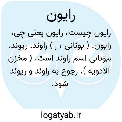 رایون. ( یونانی، اِ ) راوند. ریوند. بیونانی اسم راوند است. ( مخزن الادویه ). رجوع به راوند و ریوند شود.