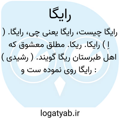 رایگا. ( اِ ) رایکا. ریکا. مطلق معشوق که اهل طبرستان ریگا گویند. ( رشیدی ):