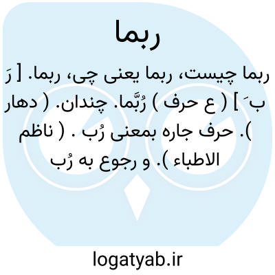ربما. [ رُ ب َ ] ( ع حرف ) رُبَّما. رُب َّ. بسا و اندکا. ( ترجمان جرجانی ترتیب عادل ص 51 ). و رجوع به این دو کلمه شود.