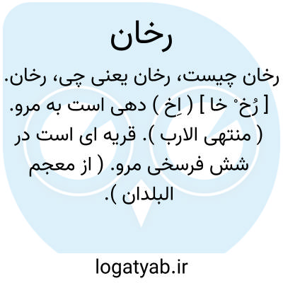 رخان. [ رُخ ْ خا ] ( اِخ ) دهی است به مرو. ( منتهی الارب ). قریه ای است در شش فرسخی مرو. ( از معجم البلدان ).