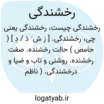 رخشندگی. [ رَ ش َ دَ / دِ ] ( حامص ) حالت رخشنده. صفت رخشنده. روشنی و تاب و ضیا و درخشندگی. ( ناظم الاطباء ). رخشنده بودن. درخشندگی. روشنی. ( فرهنگ فارسی معین ).