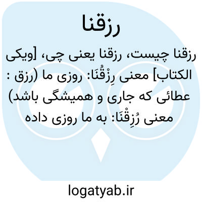 دانشنامه اسلامی [ویکی الکتاب] معنی رِزْقُنَا: روزی ما (رزق: عطائی که جاری و همیشگی باشد)معنی رُزِقْنَا: به ما روزی داده شد (رزق: عطائی که جاری و همیشگی باشد)ریشه کلمه: رزق (۱۲۳ بار)