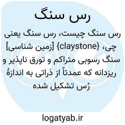{claystone} [زمین شناسی] سنگ رسوبی متراکم و تورق ناپذیر و ریزدانه که عمدتاً از ذراتی به اندازۀ رُس تشکیل شده است