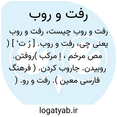 رفت و روب. [ رُ ت ُ ] ( مص مرخم، اِ مرکب )روفتن. روبیدن. جاروب کردن. ( فرهنگ فارسی معین ). رفت و رو. ( ناظم الاطباء ) ( یادداشت مؤلف ):