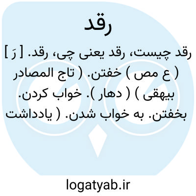 رقد. [ رَ ] ( ع اِ ) خواب. ( منتهی الارب ) ( آنندراج ). رقاد. خواب. ( یادداشت مؤلف ).