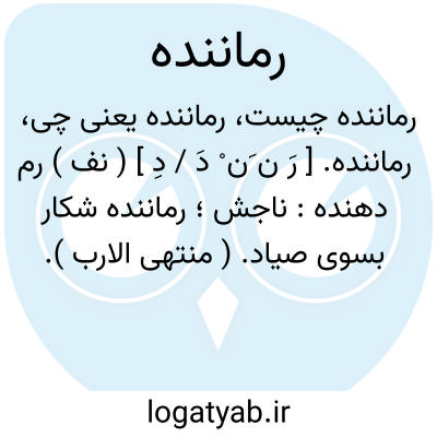 رماننده. [ رَ ن َن ْ دَ / دِ ] ( نف ) رم دهنده: ناجش؛ رماننده شکار بسوی صیاد. ( منتهی الارب ). رجوع به رماندن و رمانیدن شود.