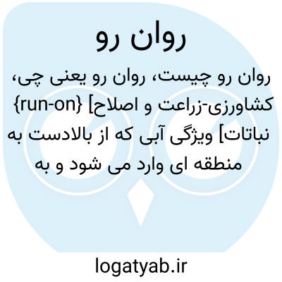 {run-on} [کشاورزی-زراعت و اصلاح نباتات] ویژگی آبی که از بالادست به منطقه ای وارد می شود و به صورت افقی روی سطح خاک جریان می یابد