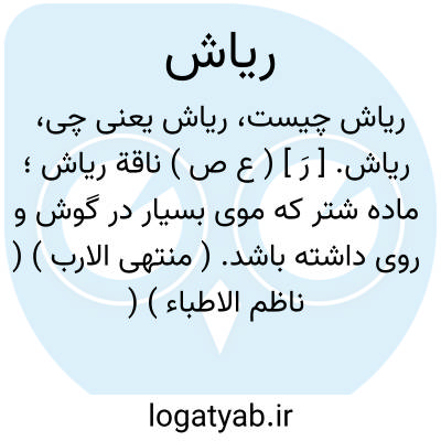 ریاش. [ رَ ] ( ع ص ) ناقة ریاش؛ ماده شتر که موی بسیار در گوش و روی داشته باشد. ( منتهی الارب ) ( ناظم الاطباء ) ( اقرب الموارد ). || سست. ( منتهی الارب ) ( ناظم الاطباء ).