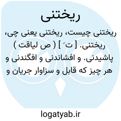 ریختنی. [ ت َ ] ( ص لیاقت ) پاشیدنی. و افشاندنی و افگندنی و هر چیز که قابل و سزاوار جریان و افشان باشد. ( ناظم الاطباء ).